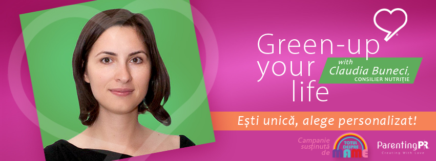 Pe Claudia o puteti gasi pe blogul ei (Pofta de viata) si pe pagina ei de Facebook, iar tot ea este creatoarea magazinului de bunatati delicioase si sanatoase Delice Corner. Intalnirea mea cu Claudia a fost posibila datorita initiativei “Green-up your life”, parte din campania “Esti unica. Alege personalizat” initiata de Parenting PR si menita sa le ofere mamelor sansa de a avea intalniri de consiliere cu patru specialisti din domenii diferite.